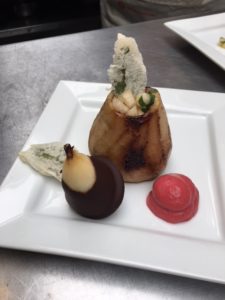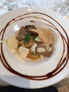 - Lentilles corail façon risotto, courgettes, finettes de veau au balsamique et sa tuile de parmesan